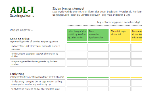 • Afprøvet ADL-I 1-3 gang i praksis med egne klienter.